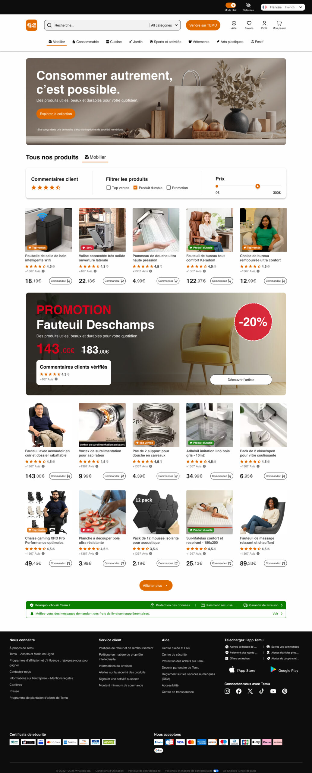 L’objectif de ce projet était d’analyser l’expérience utilisateur de la plateforme TEMU afin d’identifier les pratiques impactant l’éthique, l’accessibilité, l’inclusivité et la durabilité numérique.